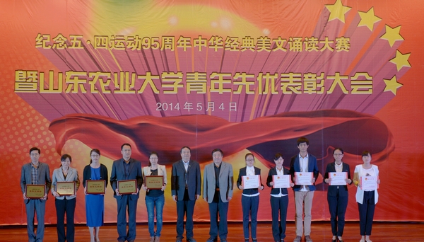 表彰大会授予植保学院烟草系等15个集体“青年文明号”荣誉称号,授予夏晓明等6名教工“青年岗位能手标兵”荣誉称号,授予李涛等22名同志“青年岗位能手”荣誉称号。同时,农学院121辩论队等18个团队获“五四优秀青年团队”荣誉称号,2011级农学4班团支部等64个团支部获“五四红旗团支部”荣誉称号,信兰婷等37名团支部书记获“优秀团支部书记”荣誉称号,靳帅等35名学生团员获“优秀团员标兵” 荣誉称号。