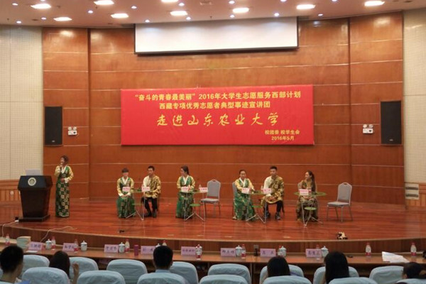 5月5日下午,“奋斗的青春最美丽”2016年西部计划西藏专项优秀志愿者典型事迹宣讲团在文理大楼报告厅为我校师生奉献了一场精彩的报告。西藏自治区团委志工部达娃曲珍,团省委志工部刘杰,各学院毕业生辅导员、学生代表参加了报告会。