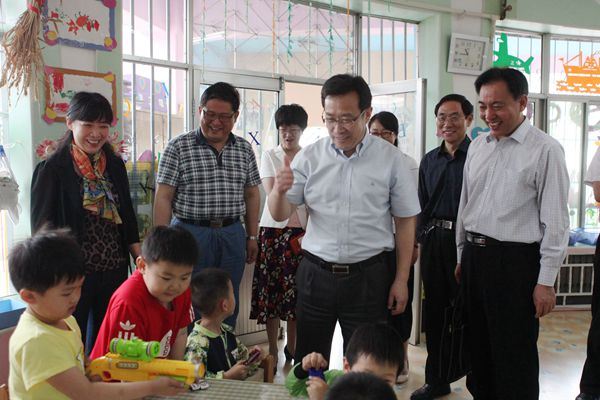 走进幼儿园,徐剑波兴致勃勃地观看了校园一角种有西红柿、黄瓜、生菜、花生、玉米等多种植物的“开心小农场”。“我们充分利用农大资源优势,种植了这些植物,让孩子们认识它们,了解它们的生长过程,提高学习兴趣。”听到负责人介绍,徐剑波说农大幼儿园学前教育别具匠心,很有特色,富有成效,要继续努力,打造品牌,让孩子健康成长,让家长满意放心。他走进教室,和教师、孩子们交流,提前祝孩子们“六一”儿童节快乐。