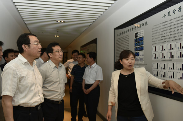 赵强一行参观了学校作物生物学国家重点实验室、土肥资源高效利用国家工程实验室和国家苹果工程技术研究中心。参观过程中,泰山学者葛磊、李刚,九三学社社员赵庚星、郝玉金等党外代表人士,分别就各自团队的科研与社会服务情况作了汇报。