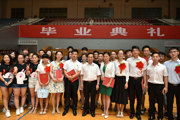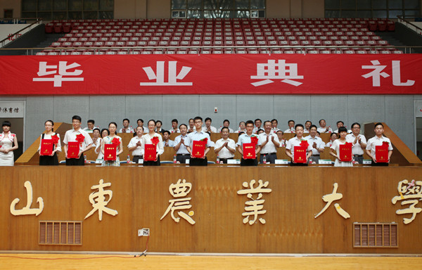毕业典礼上宣读了学校表彰2016届省级优秀毕业生和山东农业大学优秀青年志愿者的决定,学校领导为获奖同学颁奖。