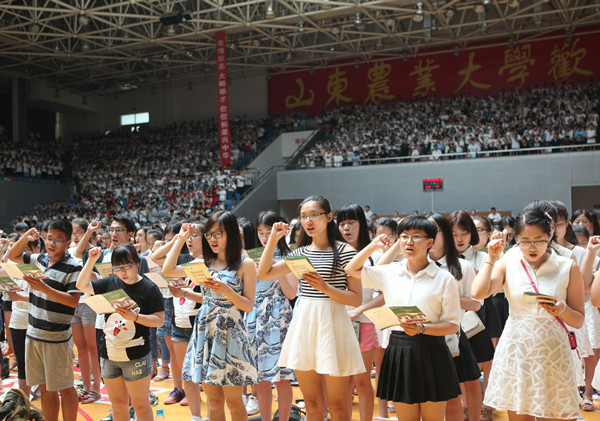 毕业典礼结束时,全体毕业生举起右手郑重宣誓:铭记母校教诲,践行登高必自,坚定理想信念,练就过硬本领,勇于创新创造,矢志艰苦奋斗,锤炼高尚品格,担当历史重任,激扬青春、开拓人生、奉献社会,为实现中国梦而努力奋斗!