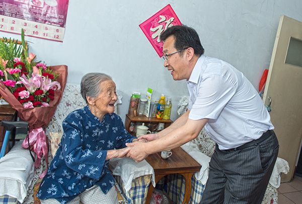 党委书记徐剑波、党委副书记车先礼带领有关单位负责同志,到家属院亲切看望了102岁高龄的老党员迟玉芳。徐剑波与迟玉芳亲切交谈,询问她的身体状况、生活起居情况,并向她介绍学校发展有关情况,祝老人节日快乐、身体健康。迟玉芳十分感谢党的关怀、学校的关心,祝愿学校发展得更好更快。