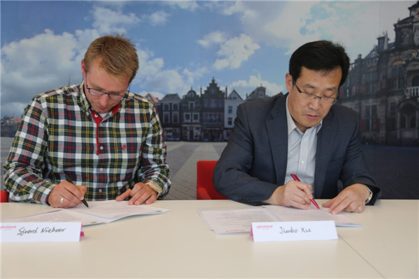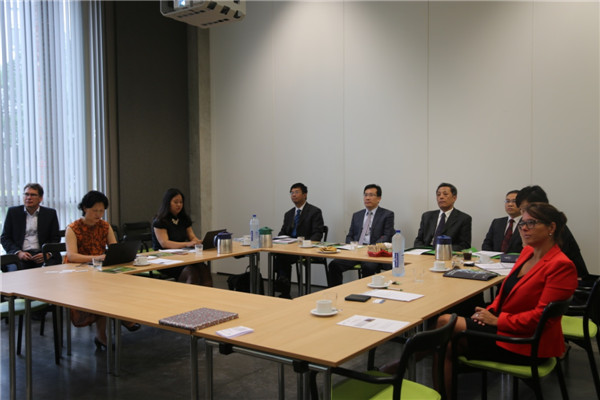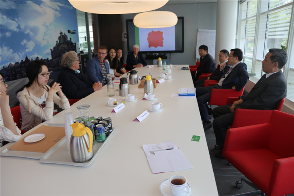 徐剑波一行首先赴荷兰访问了荷兰应用科技大学、瓦格宁根大学和研究中心。在荷兰应用科技大学,副校长Sj0ered Nieboer教授、国际合作部门负责人Anne Sophie教授等4人对我校代表团给予了热情接待。据Sj0ered Nieboer教授介绍,该校是荷兰一所比较著名的大学,全校有33500名学生,10个校区分布于荷兰的10个城市,其农业(含农业经济管理)和信息工程学科比较突出。通过双方的沟通交流,我校与荷兰应用科技大学签署了校际合作协议,同意在教学、科研及知识进步与传播方面进行合作交流,特别是在相关专业“2+2”合作办学项目方面,开展进一步的探讨。“荷兰瓦格宁根大学和研究中心”是由前瓦格宁根大学和前瓦格宁根研究中心合并成立的一个高等教育和科研联合体,该联合体有在校学生10000余人、教师2600人、科研人员2700人,属于荷兰和全球的知名教研机构,特别是在生命科学研究方面更加突出。在这里,国际交流与对外合作处负责人阿斯特丽德·霍伊维尔教授及中国项目负责人、食品与生物技术研究院、商学院的负责人热情接待了我校代表团,双方商讨了在农业技术推广和联合研究、青年教师培养等方面的合作交流意向,同意在园艺科学、动物科学和食品科学领域开展教师科研合作与交流等。