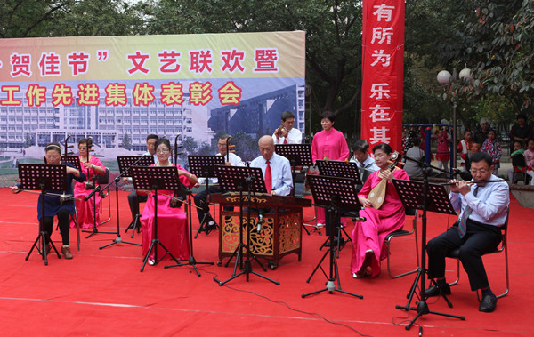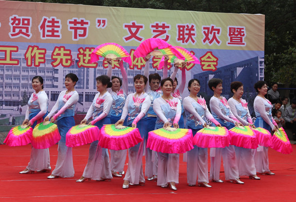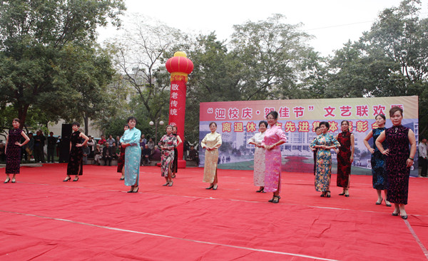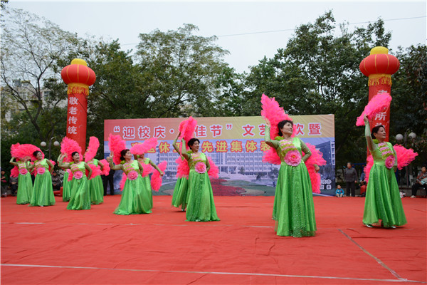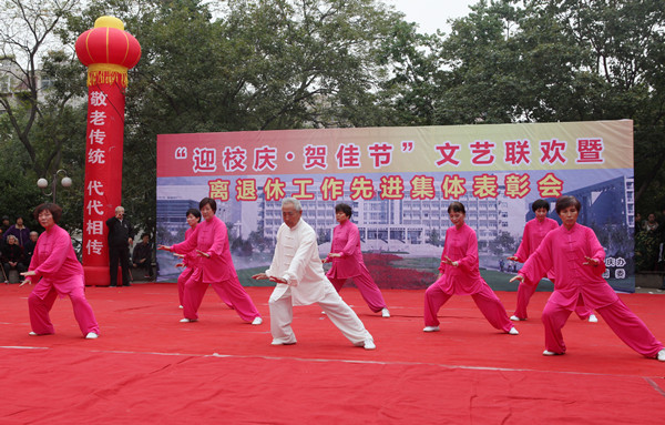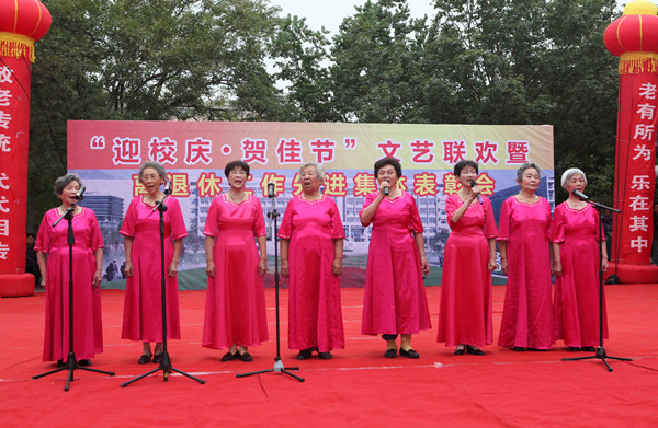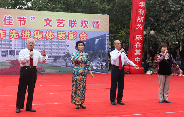 10月9日,学校在夕阳红广场举办“迎校庆·贺佳节”文艺联欢暨离退休工作先进集体表彰会。学校领导徐剑波、董新胜、车先礼、张宪省、朱莉、嵇景涛、王振林,各单位、各部门主要负责人和离退休教职工欢聚一堂,共庆老人节。联欢会前15个离退休先进集体受到表彰。