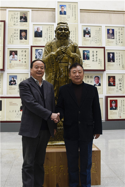 11月13日,天津校友分会捐赠孔子铜像揭幕仪式在南校区举行,党委副书记车先礼、天津校友分会会长潘寄青共同为铜像揭幕。