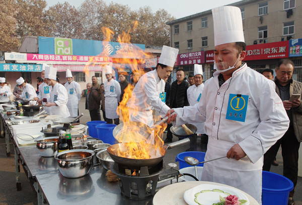 车先礼宣布技能比赛(展示)开始。附校11名教师展示粉笔字书写、多学科板书设计技能,幼儿园13名教师展示吹画、刮蜡画技能;饮食服务参赛选手中有的进行包水饺比赛,有的参加烹饪比赛。活动现场紧张有序,参赛选手争分夺秒,现场制出画作,展示粉笔书法,设计数学、英语、美术、音乐等课程板书,做出名为“中国梦”、“不忘初心”等造型优美的菜品,吸引很多观众驻足观看。3名专业厨师和2名学生代表作为评委,现场为参赛选手打分。经过激烈角逐,在饮食服务技能比赛中,3名选手获一等奖、6名选手获二等奖、5名选手获三等奖。