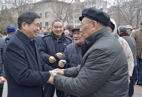 尽管清晨的天气格外寒冷,但夕阳红广场却热闹非凡。不到8点,人们陆续聚集到这里,大家见面热烈握手、亲切问候,表达对新年的美好祝愿。欢声笑语让夕阳红广场暖意融融、洋溢着浓浓的春意。