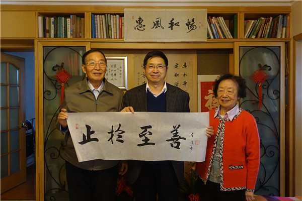 离别之际,李振声向张宪省一行赠送了“止于至善”字幅,祝愿山东农业大学的明天更加美好。