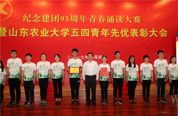 不忘初心跟党走,激扬青春中国梦。5月4日,学校在文理大楼报告厅举行纪念建团95周年青春诵读大赛暨山东农业大学五四青年先优表彰大会。学校领导徐剑波、朱莉、杨天梅、张然出席活动并为青年先优集体和个人颁奖。
