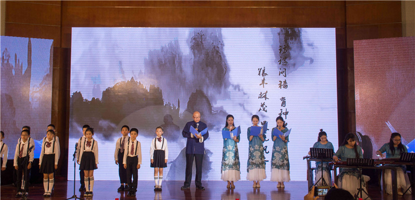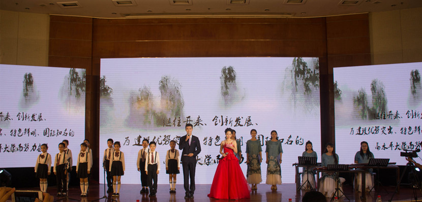 由农大附校小朋友和体艺学院师生共同表演的《山农颂》成为诗会的一大亮点。224字的《山农颂》是学校110周年校庆期间创作的艺术作品,既是农大办学历史的回顾和总结,又是学校文化的凝练和提升。伴随着古琴清新雅致的伴奏,山水画卷在大屏上缓缓展开,小朋友的声音稚嫩清脆,吟唱者的声音低回委婉,节目韵味醇厚,沁入肺腑,赢得了观众的强烈共鸣。