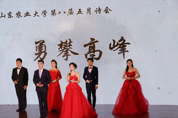 5月31日,由党委宣传部、校工会、校团委、学工处主办的“勇攀高峰”山东农业大学第八届五月诗会在文理大楼学术报告厅隆重举行。学校党委副书记朱莉,纪委书记张明志,副校长王振林、吴衍涛、张然,山东省话剧院党总支副书记邓鸣、原副院长李朝友与500余名师生共同参加活动。