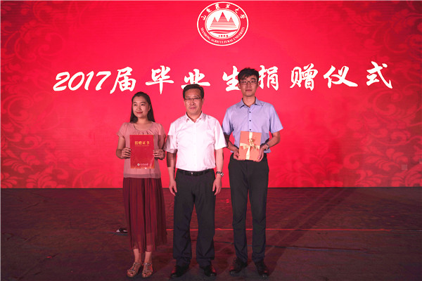 晚会上,党委书记徐剑波代表学校接受2017届毕业生代表捐赠,并为他们颁发捐赠证书。校长张宪省为获得第十五届校长奖学金的毕业生颁奖。