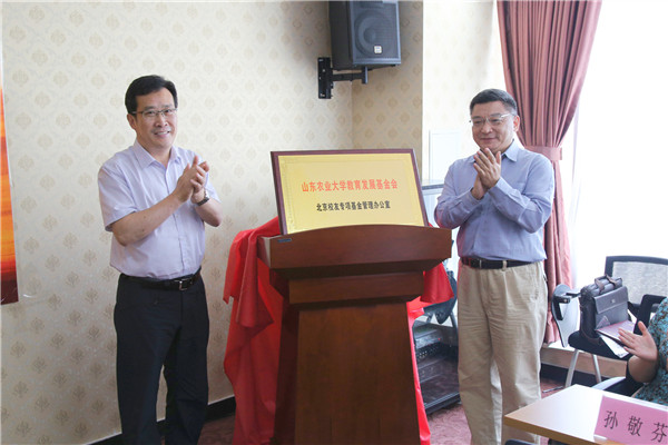 会上,徐剑波和王涛为专项基金管理办公室揭牌。光合文旅控股股份有限公司董事长王明荣向专项基金捐赠人民币20万元并代表北京校友发言,朱莉代表学校接受捐赠并颁发捐赠证书。王涛、袁学国等校友进行了个人捐赠。米庆华宣读了《山东农业大学教育发展基金会北京校友专项基金管理办法》。