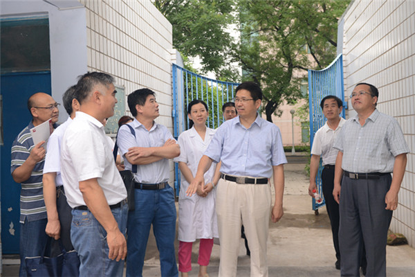 张宪省一行在校医院仔细查看医疗服务工作的开展情况,听取冯润东院长关于校医院工作人员、仪器设备、财务情况、日常管理等方面的汇报。