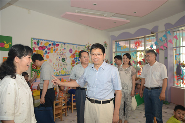 在幼儿园,张宪省认真查看了幼儿园的环境和硬件设施,走进活动室了解孩子们的学习情况,对幼儿园温馨整洁的环境和富有创意的设计给予充分肯定。园长李红岩介绍了幼儿园目前的办学规模、运行现状和存在的问题,张宪省详细询问班额配置、班级面积、师资来源、教师职称待遇等问题,要求随行的相关职能部门负责人积极解决目前存在的困难。他说,希望幼儿园工作人员再接再厉,确保孩子们在幼儿园健康快乐成长,让学校放心,让家长满意。