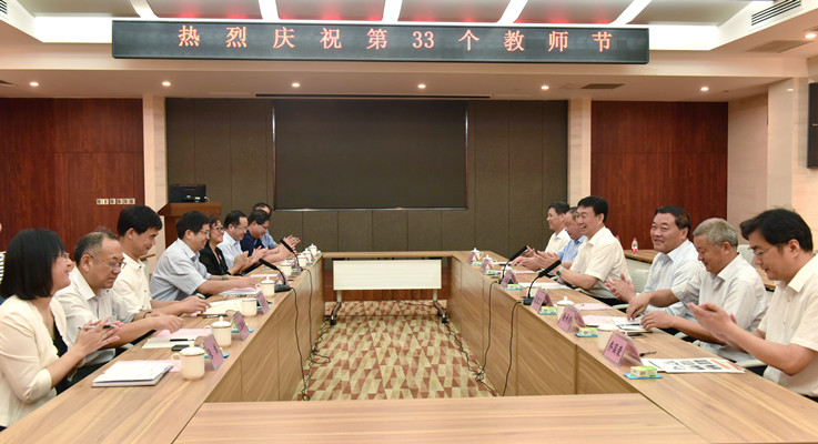 第33个教师节来临之际,9月4日上午,中共泰安市委书记王云鹏,市委常委、常务副市长展宝卫,市委常委、秘书长宋洪银等一行来我校走访慰问,为全体教职工送上节日的问候。校长张宪省会见王云鹏一行并座谈交流,校领导朱莉、高东升、嵇景涛、王振林、吴衍涛、张然、司金贵出席座谈会。