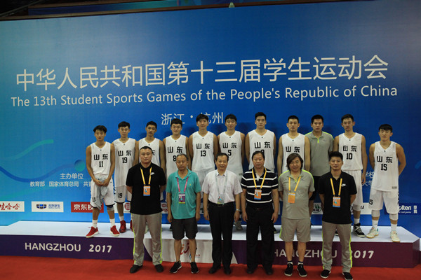 日前,中华人民共和国第十三届学生运动会在浙江杭州举行。经过激烈角逐,以我校男篮为主组建的山东代表队荣获大学组男子篮球比赛第五名的好成绩。