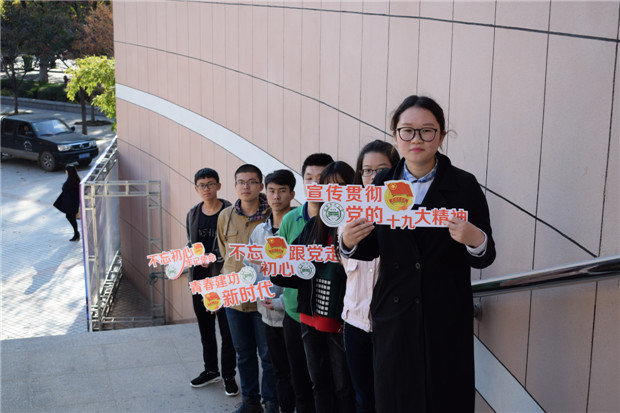 党有号召,团有行动,青年有担当。连日来,全校广大团员青年结合日常生活与学习,采用多种形式掀起了学习宣传贯彻党的十九大精神的热潮。他们用习近平新时代中国特色社会主义思想武装头脑,进一步坚定理想信念,立志在实现中华民族伟大复兴中国梦的生动实践中放飞青春梦想,书写人生华章!