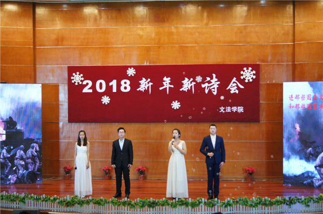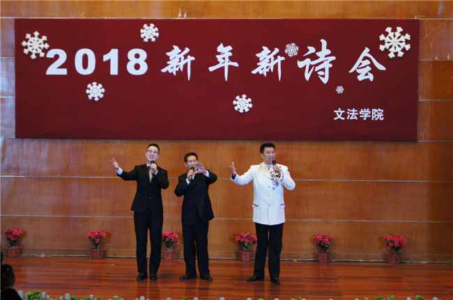 12月26日,由文法学院承办的学校2018新年新诗会在文理大楼学术报告厅举行。校领导张宪省、张明志、吴衍涛出席诗会,与500余名师生一起感受诗歌魅力。