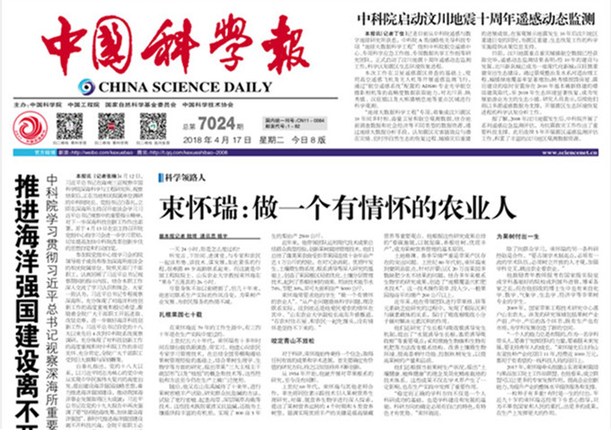 4月17日,中国科学报在头版刊发人物通讯《束怀瑞:做一个有情怀的农业人》,为中国工程院院士、山东农业大学教授束怀瑞点赞。这是中央媒体近期对束怀瑞院士集中报道的一部分,据了解,经济日报、中国青年报、中央电视台后续也将推出相关报道。