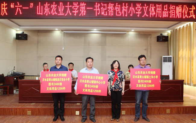 在中心小学举办的庆“六一”山东农业大学学习用品捐赠仪式上,张然向第一书记和驻村工作队帮包村所在的三所小学发放捐赠的图书和学习用品。这些物品是学校工会用全校教师“爱心一日捐”、经省教育基金会返还学校使用的教育精准扶贫资金购买,在“六一”国际儿童节到来之际捐赠给第一书记和驻村工作队队员帮包村所在小学,供孩子们借阅使用。