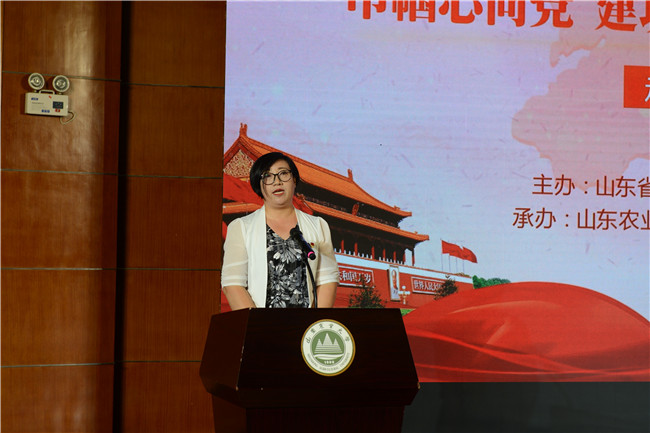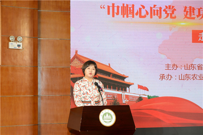 张然在致辞中介绍了山东农业大学办学特色以及妇女群体和妇女工作成绩,希望全校师生向先进模范人物学习,扛起应有的使命担当,发挥好高校在先进文化引领方面的重要作用,让社会主义核心价值观在校园中开花结果,为实现中华民族伟大复兴中国梦贡献“农大智慧”。