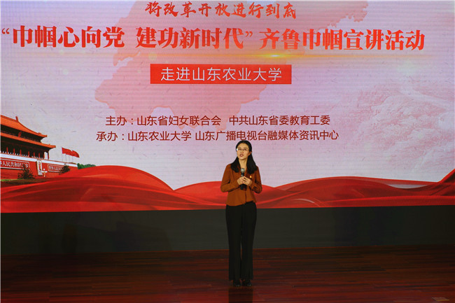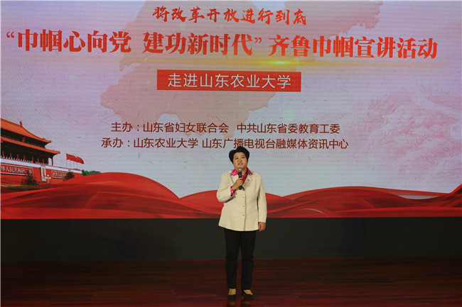 9月27日下午,山东省妇联组织开展的“将改革开放进行到底——巾帼心向党,建功新时代”齐鲁巾帼宣讲活动在山东农业大学启动。启动活动由山东省妇联、中共山东省委教育工委主办,山东农业大学、山东广播电视台融媒体资讯中心共同承办。党委书记徐剑波会见宣讲团成员,省妇联副主席魏艳菊、孙应琢,山东农业大学副校长张然等出席活动。