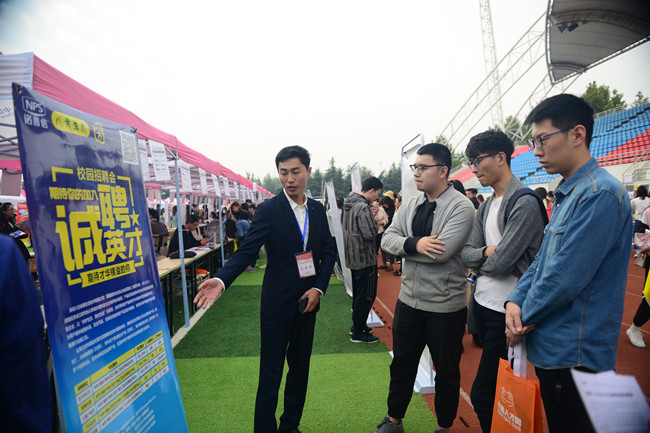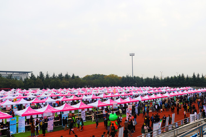 10月14日,学校2018年秋季就业市场在南校区体育场举行,吸引了来自19个省(直辖市、自治区)的894家用人单位,为2019届毕业生准备了一场盛大的“就业大餐”。