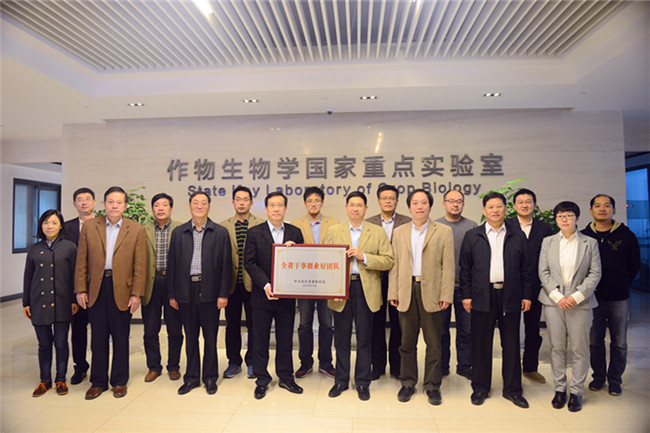 10月23日,学校召开座谈会,学校领导徐剑波、张宪省出席。党委书记徐剑波为作物生物学国家重点实验室团队代表颁奖,向团队表示热烈祝贺,对团队成员付出的辛勤努力表示衷心感谢。