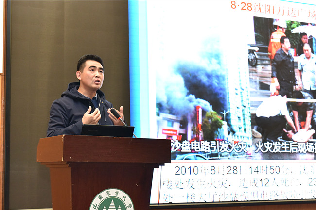 会上,杨旭东围绕消防责任和消防能力建设两个部分,通过大量生动、丰富的图片和案例,运用深入浅出的语言向大家讲解在火灾发生时报警、自救、疏散等的注意事项以及正确、规范做法。