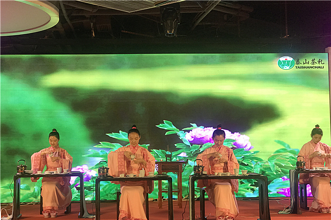 我校获奖团体节目为《泰山茶礼》。该节目以泰山茶曾作为封禅御用茶品史料为编创基础,以起舞迎宾、焚香祈福、礼敬香茗等环节展示泰山茶礼之庄重,将泰山文化与泰山茶文化充分融合,展示泰山之伟岸,表达“国山圣水,茶礼天下”之主题,展示大国大山之情怀。节目现场呈现磅礴大气、唯美庄重,赢得现场观众和评委的一致好评。
