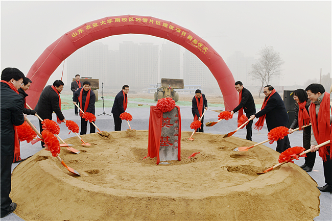 12月16日上午,山东农业大学举行南校区经管片区建设项目奠基仪式,这也标志着拥有教学实验楼、办公楼、学生公寓、餐厅、运动场、地下车库及配套服务设施等,总建筑面积近10万平方米的经管学院片区正式开工建设。