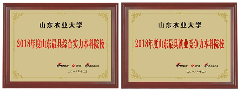 近日,新浪2018年度山东教育盛典荣耀榜单盛大发布,山东农业大学荣获“2018年度山东最具综合实力本科院校”和“2018年度山东最具就业竞争力本科院校”双料大奖。