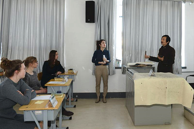 3月15日,山东农业大学首届短期留学生中国文化课程正式开班。学校向7位德国留学生赠送了校徽和代表中国传统文化的《四书》,每位授课老师送上了一句祝福寄语,每位学员也来了句“中国秀”。