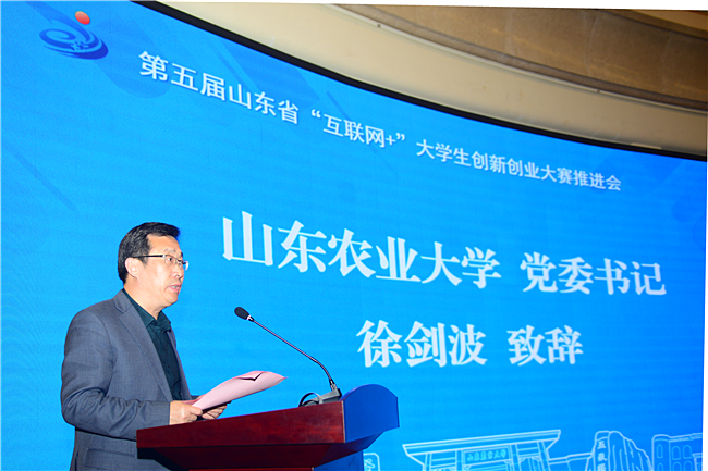 4月17至18日,第五届山东省“互联网+”大学生创新创业大赛推进会在山东农业大学召开。省委教育工委委员,省教育厅副厅长、党组成员王坦,山东农业大学党委书记徐剑波出席会议。来自省教育厅、全省130余所高校和9个地市教育局的300余名代表参加会议。