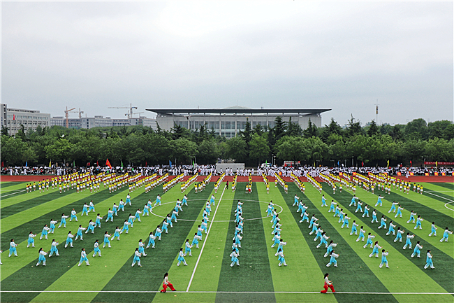 春光旖旎,雨后乍晴。党委书记徐剑波宣布运动会开幕。由300名学生组成的跆拳道队伍率先登场,整齐划一的姿势、标准到位的动作将跆拳道的一招一式淋漓尽致地演绎出来,赢得了在场观众的阵阵喝彩;伴随着悠扬的乐声,150余名教职工代表们身着蓝白色服装,为现场观众呈现了一场刚柔并济的太极拳表演;400名师生参加的大型团体操在绿茵场上变幻多姿,造型多样,“五星红旗”“70”“2019”等造型不仅彰显了农大人热爱祖国、奋进担当的新时代情怀,更将表演推上了高潮。