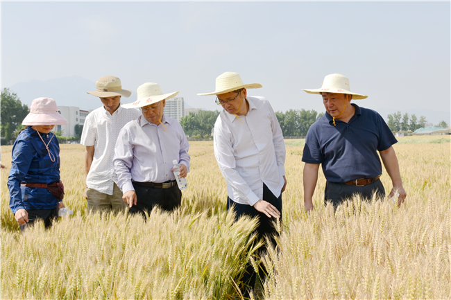 麦浪滚滚,麦香飘飘。6月2日,中国农业科学院作物科学研究所所长刘春明、党委书记范静等一行21人在校长张宪省的陪同下深入南校区农学院试验田、站园、宅子村等地查看小麦长势情况,听取农学院负责人对不同小麦品种以及近期研究成果的详细介绍。