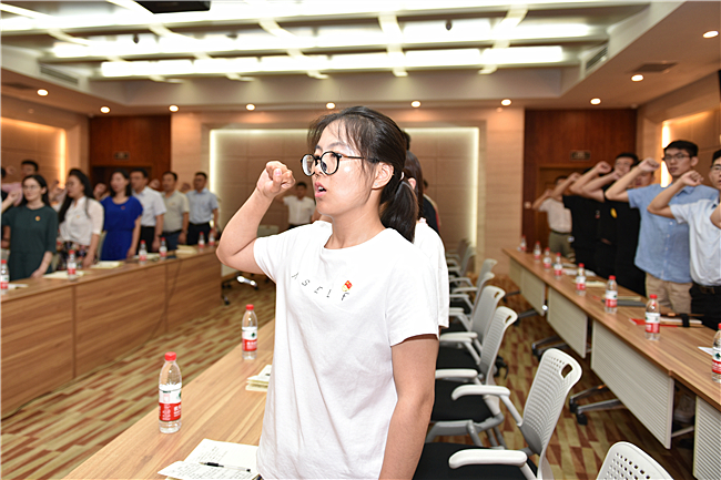 党课结束后,徐剑波带领全体党员共同举起右手,在鲜红的党旗前重温入党誓词。