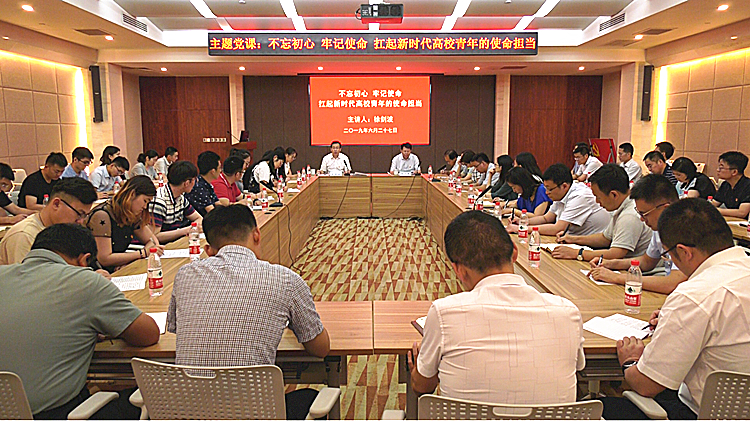6月27日下午,党委书记徐剑波走进国重楼一楼报告厅,与部分师生代表共聚一堂,亲切交谈,并以“不忘初心、牢记使命,扛起新时代高校青年的使命担当”为题,给大家上了一党生动精彩的主题党课。