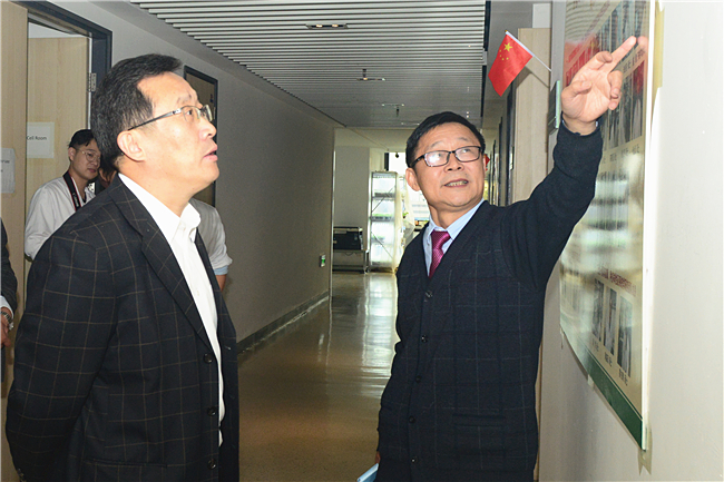 在作物生物学国家重点实验室,徐剑波分别走访慰问了陈学森、田纪春、张修国、储昭辉4位专家,在实验室里与专家们谈心交流,详细了解工作生活情况,听取他们对学校开展主题教育、加强基层党的建设、加快办学发展的意见建议。陈学森教授刚刚拿到多项新品种鉴定证书,他向徐剑波介绍了近期在菏泽、聊城等地推广“山农酥”梨的情况,表示作为党员专家,就是要把初心和使命落实在服务脱贫攻坚、乡村振兴的主战场上,以实际行动发挥好先锋示范作用。徐剑波对陈学森近来取得的成绩表示祝贺。他说,主动融入国家和区域重大发展战略,把最好的论文写在大地上,始终是山东农大人的追求和坚守。走进新时代,学校更是要把这种家国情怀、创业精神传承好、发扬好,把这些农大文化里的优秀元素与共产党人的初心和使命结合起来,引导全体师生投身经济建设大潮之中,在充满希望的田野上写好新的山农篇章。储昭辉教授向徐剑波汇报了自己“十年磨一剑”,聚焦抗纹枯病关键领域开展科技攻关的情况,感谢学校为自己成长创造的良好环境。徐剑波说,科学研究必须遵循客观规律,不能搞单一指标,更不能搞急于求成。各级党组织服务人才成长,很重要的一点就是要为专家学者开展科技攻关营造良好氛围,让大家甘于坐“冷板凳”,能够沉下心来“冷思考”,只有这样,学校才能产出更多具有战略意义的大成果、好成果。
