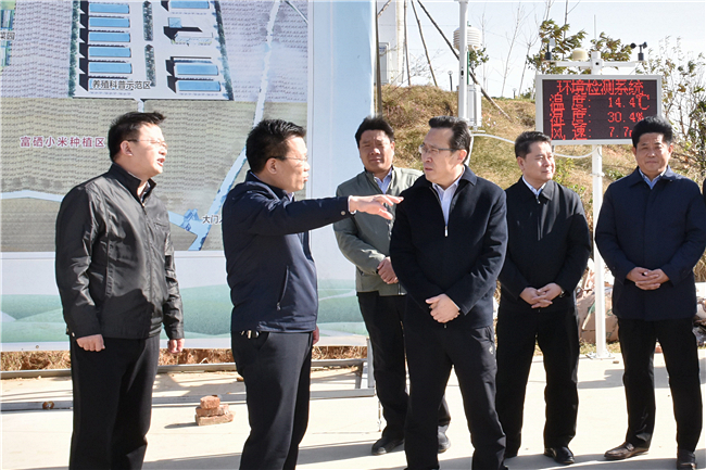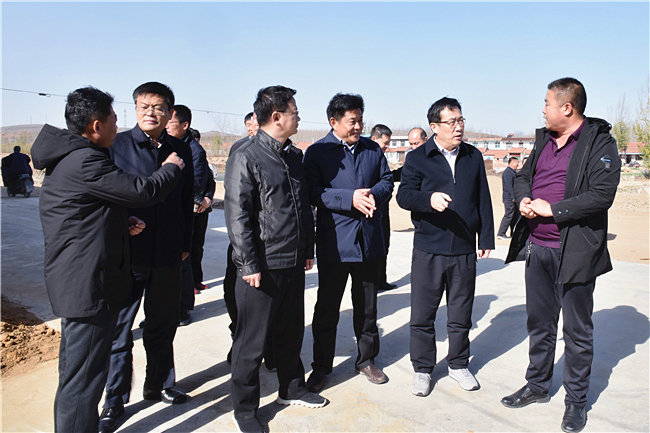 徐剑波一行到我校第一书记和驻村工作队成员耿传刚、刘志勇、王小东、赵奎庭、张伟所在的帮包村,现场考察唐王坡农业产业园建设项目及村容村貌、环境整治项目进展情况,听取工作汇报,与村两委成员交谈,了解村里党建、生产、村民生活等方面的情况。