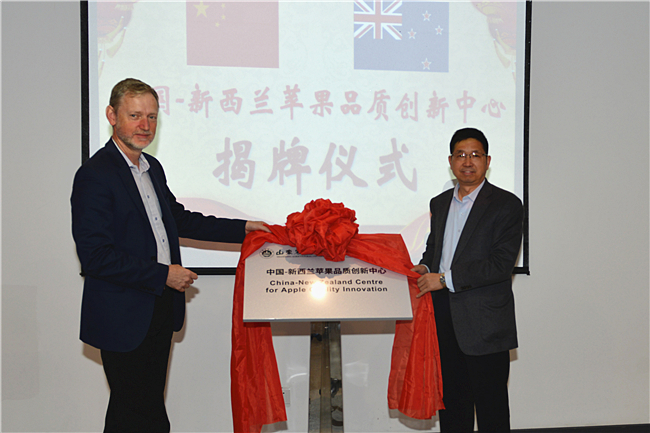 11月15日,“中国·新西兰苹果品质创新中心”在我校揭牌,校长张宪省与新西兰皇家植物与食品研究院总裁胡德维(DavidHughes)代表共建双方签署合作协议。根据协议,双方将在苹果品质形成的基因组学领域展开深入合作,共同开展苹果果实品质相关研究,包括解析环境因子调控苹果果实色泽的分子机制、基于全基因组等位基因差异表达分析等分离基因并鉴定其功能,以及共同申报国家(新西兰与中国)和国际项目、合作发表科学论文、互派师生交流和合作研究等。