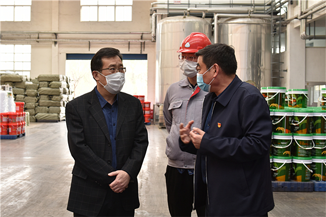 在企业控释肥生产车间、微生物车间、产品展示区和实验室,农大肥业董事长兼总经理马学文向徐剑波一行介绍了企业近期发展情况。徐剑波与大家边走边聊,看到企业近年来在科技研发、技术实力等方面取得快速发展和显著成绩,徐剑波非常高兴。他说,农大肥业为地区经济社会发展创造了很高的经济价值和社会价值,从创业之初发展到今天,披荆斩棘,历经风雨,实属不易。面对疫情防控的特殊形势,企业克服困难,有序推进复工复产,不仅为经济社会发展作出了贡献,更彰显了现代企业的使命担当。