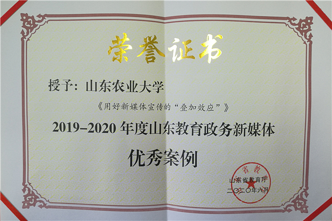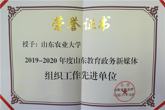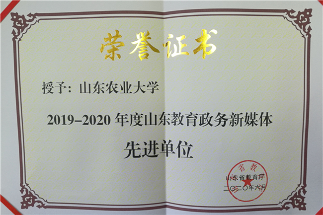 6月19日,2020年山东教育政务新媒体联盟年会在青岛召开,省委教育工委委员,省教育厅党组成员、副厅长戴龙成到会并讲话。会议总结经验、交流研讨,对在教育政务新媒体运维中取得突出成绩的单位进行表彰。在由16地市教育局和120余所高校组成的盟员单位中,山东农业大学喜获山东教育政务新媒体先进单位、组织工作先进单位,推荐案例获评山东教育政务新媒体优秀案例。
