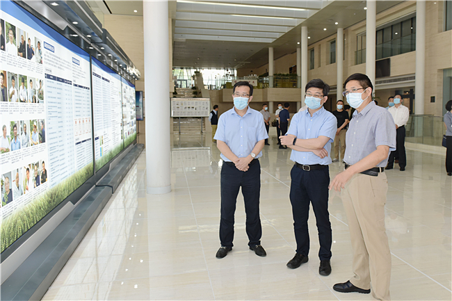 在作物生物学国家重点实验室,张宪省向龚文东介绍了实验室基本情况、科研团队组建情况以及近期取得的科研成果等,表示学校将围绕“双一流”建设,持续深化体制机制改革,创新办学发展理念,力争向高水平大学迈进。