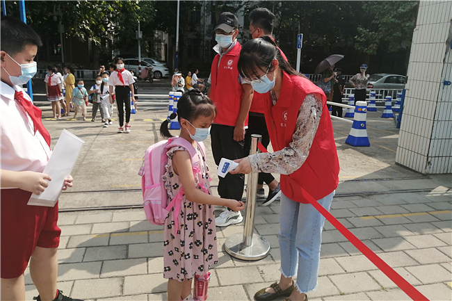 8月31日,附属学校迎来了小学生,身穿红马甲、佩戴口罩的老师们整齐地站在校门口欢迎学生们的到来。已报到的小学生在高年级哥哥姐姐的引领下有序测温、消毒,再经班主任门口复测体温后进入教室。9月1日,附属学校以“厉行节约,反对浪费”为主题举行了开学典礼,少先队代表向全校师生发出了“勤俭节约不浪费,热爱劳动多实践”的倡议。