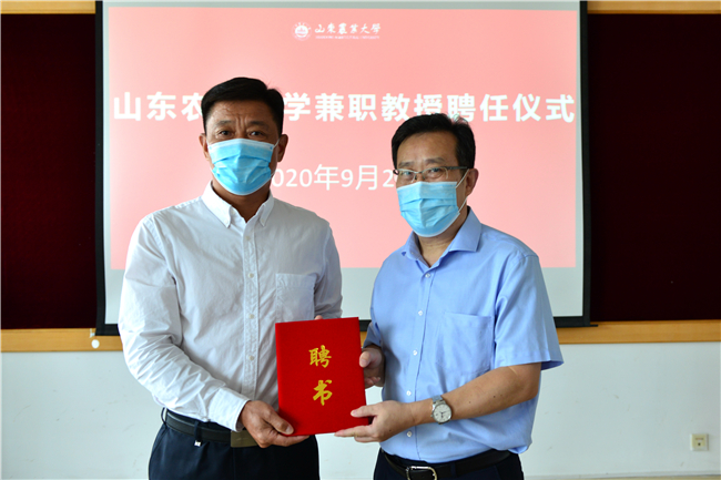 9月2日,学校举行兼职教授聘任仪式,聘请青岛乐通合创股权投资有限公司副董事长兼总裁张少雄为我校兼职教授。党委书记徐剑波出席聘任仪式并颁发聘书,感谢张少雄一直以来对山东农大发展的关心关注,希望他发挥行业影响力,为学校高水平大学和高水平学科建设提供更大支持。