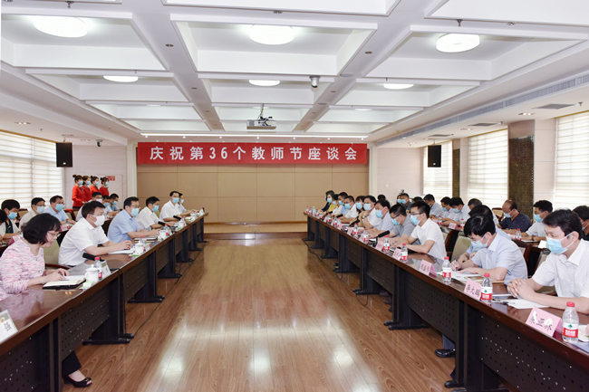 9月9日,学校庆祝第36个教师节座谈会在学实楼举办,表彰教育教学一线中涌现出的先进典型,交流学习工作经验。校领导徐剑波、张宪省、杨天梅、辛杰、张然出席会议,并为获奖人员颁奖。