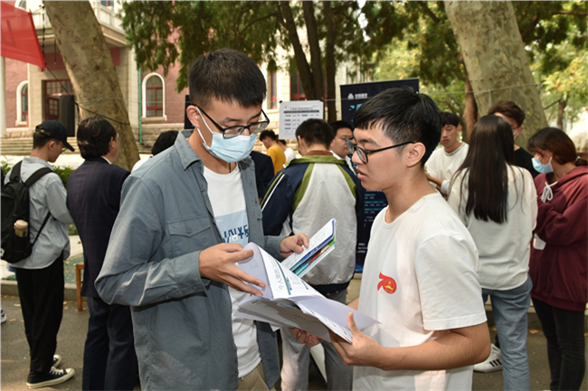 本次招聘活动在南北校区同时举办,用人单位通过发放宣传册、扫描二维码等多种方式向同学们详细介绍公司概况、企业文化、福利待遇、人才需求等基本情况。相关学院负责人也到会与用人单位进行洽谈交流,积极推荐毕业生就业,并就人才培养、校企合作等工作与用人单位沟通交流。求职毕业生精心准备,手持简历材料到相关招聘单位,仔细询问了解单位情况及用人需求,积极寻求适合自己的就业岗位。会后十家用人单位依次登台宣讲企业招聘信息,并与毕业生展开现场双选。